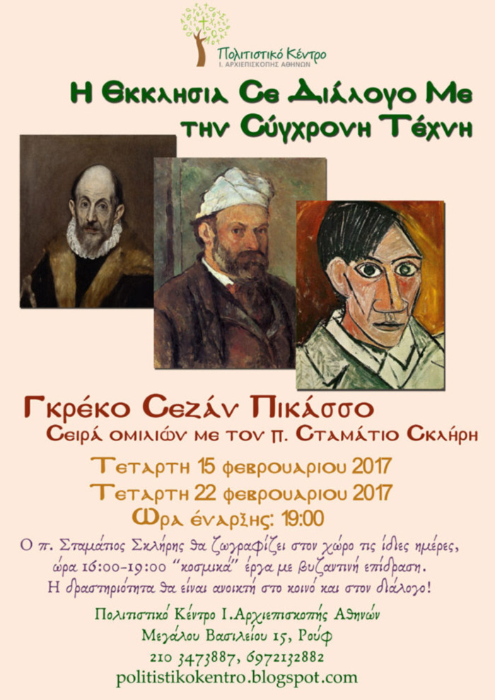 Оn Wednesday, January 16, 2013, at 8:30 pm, there will be a presentation with slide-shows from the iconographic work of Father Stamatis Skliris. The author himself will comment on his works in varios churches in Greece and Serbia (among others: Saint Nektarios Voula, Prophet Elijah Castella, Evangelistria - Halandri, Agios Panteleimon, Glyfada, St George - Stemnitsa, Saint Maximus Kostolac, Serbia).