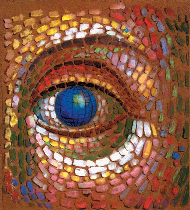 Finally, the main characteristic of Fr. Stamatis’ paintings is the gaze. Although his work encompasses many forms of painting – frescos, icons, pictures, book illustrations, etc. – and although it employs various techniques and styles, there is something common to all of it that unites everything and that gives everything a stable identity. This characteristic is the gaze from the image. Inall the painted images by Fr. Stamatis, the gaze is “questioning.” As in the Psalms God “searches the hearts andreins” (Ps. 7:9), so also the gaze of these paintings questions and inquires about the existential depth of the picture’s observer.