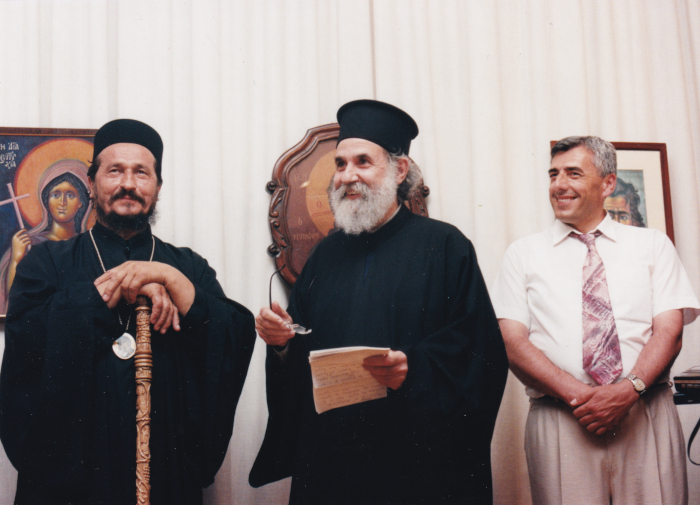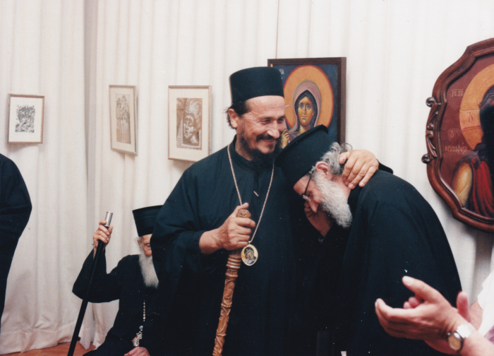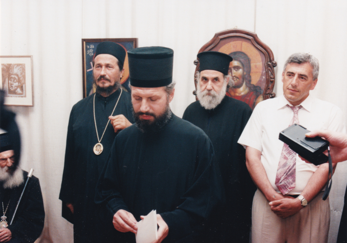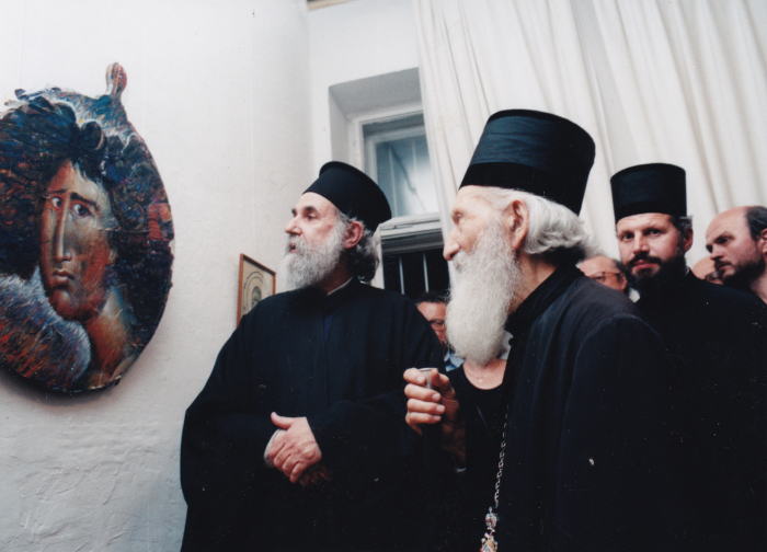 Exhibition of Fr Stamatis’ paintings in Trebinje, 1998, on the occasion of celebration of 800 years of Hilandar Monastery
