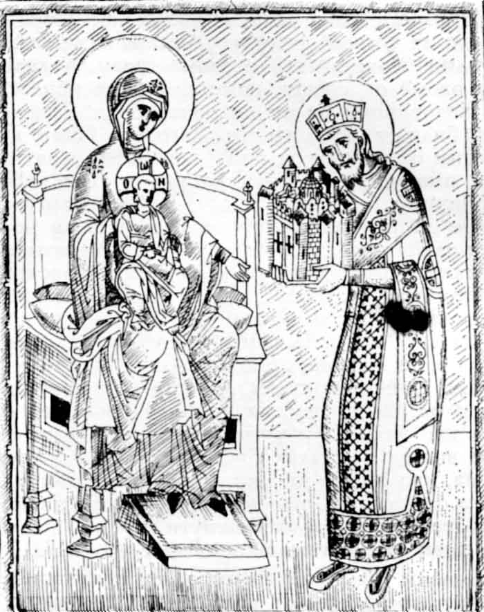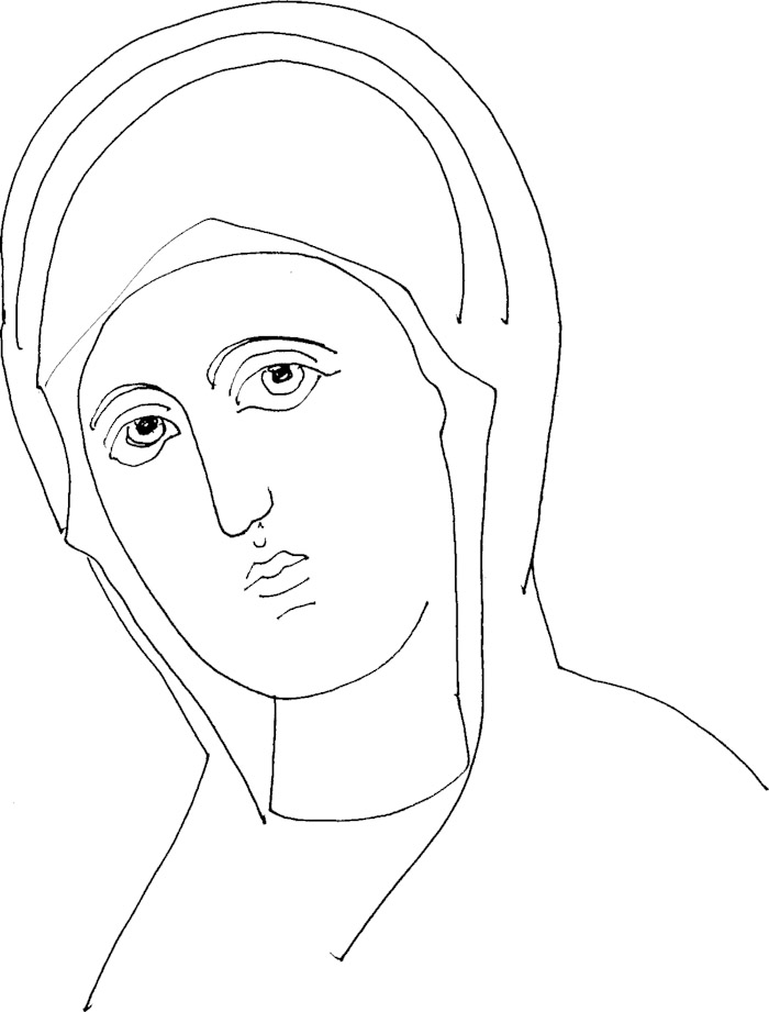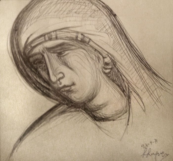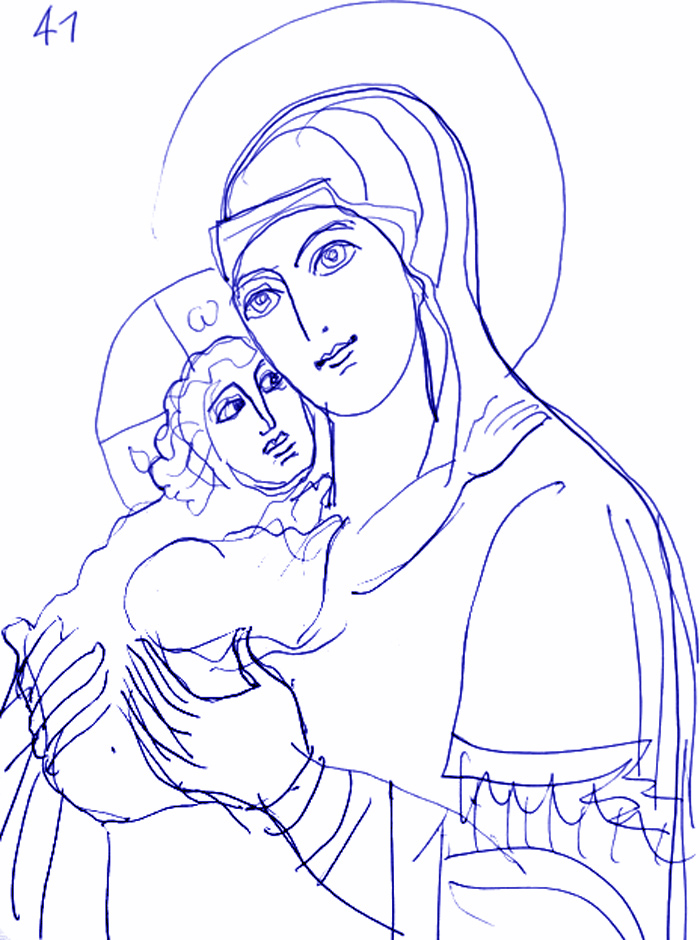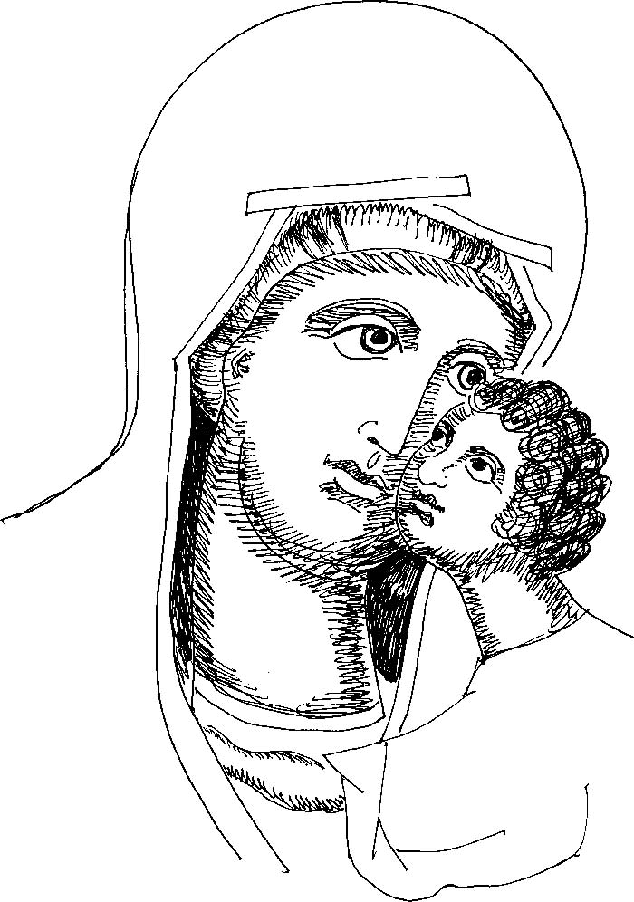 The Panagia "Thrinodousa", Stamatis drawing, 1971.