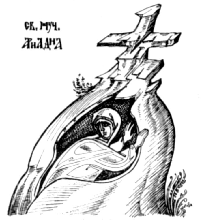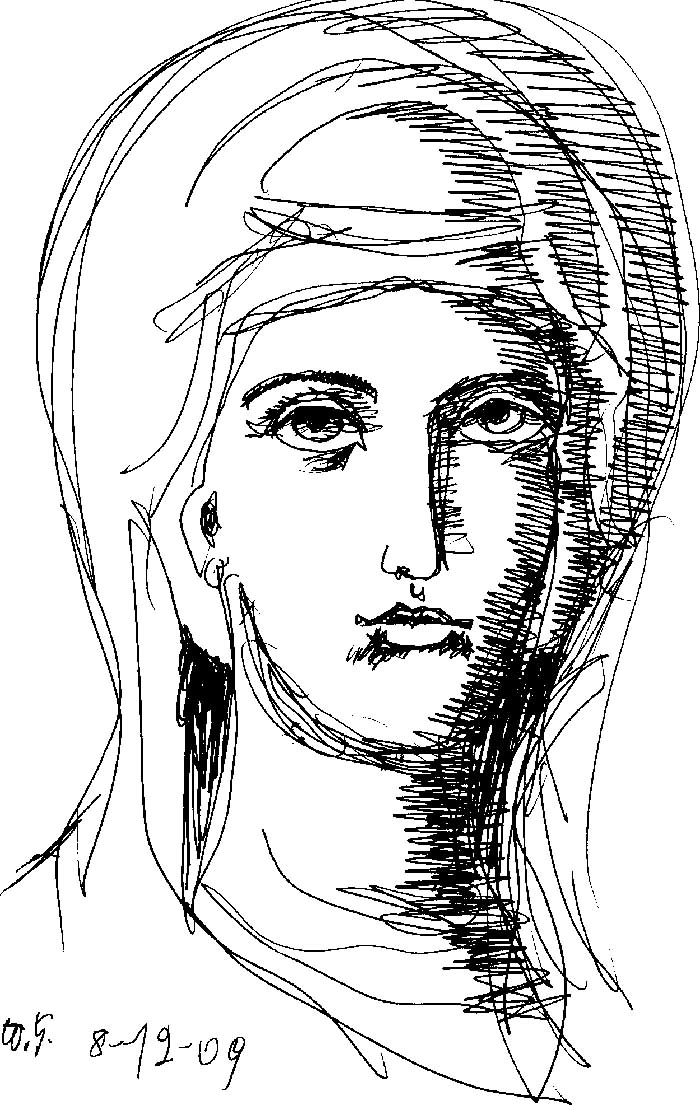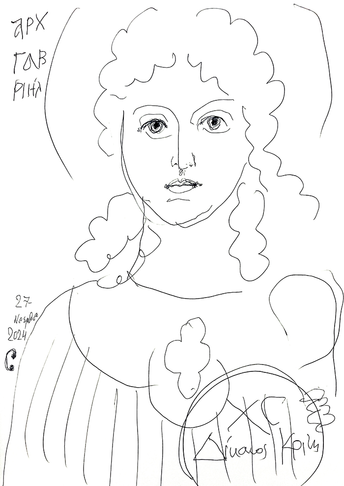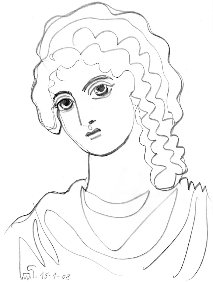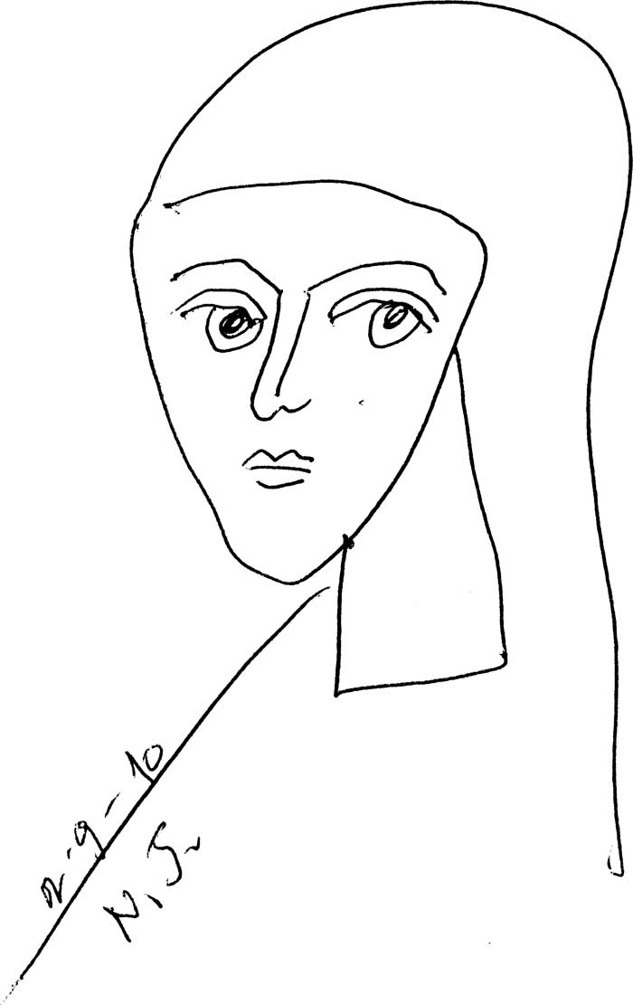 St Melania of Rome, drawing, Stamatis and Marina Skliris, 1976