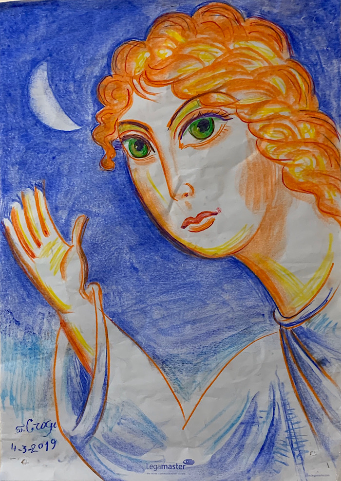 "Jesus Christ: Fiery Love", color drawing on paper, 2019
