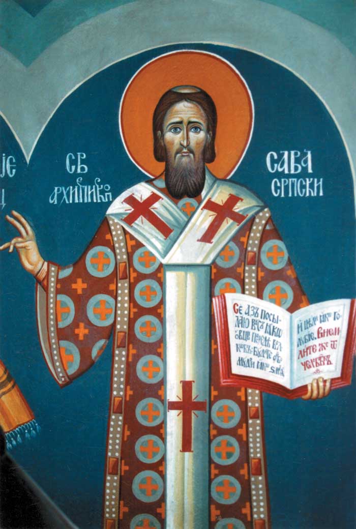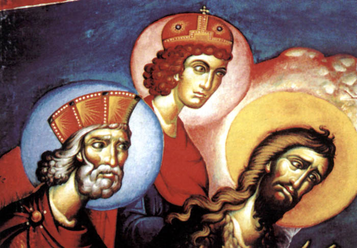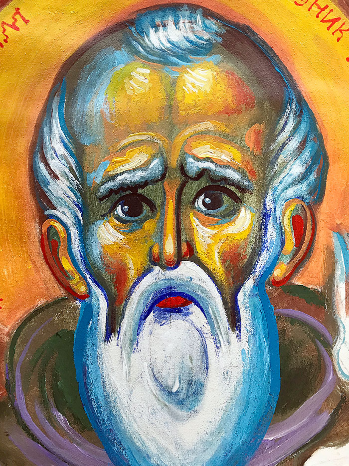 "Three Serbian Saints: Sava, Nicholai, and Justin", detail: Saint Sava, acrylic on board, 2020, Stamatis Skliris