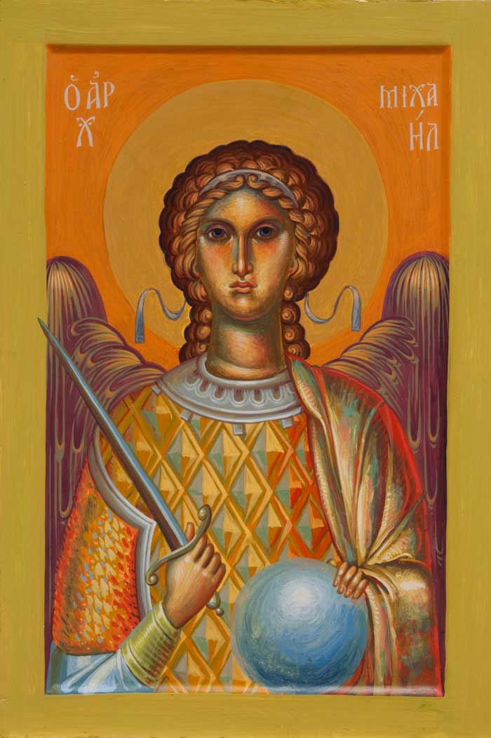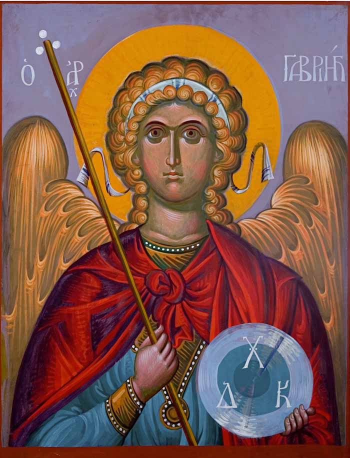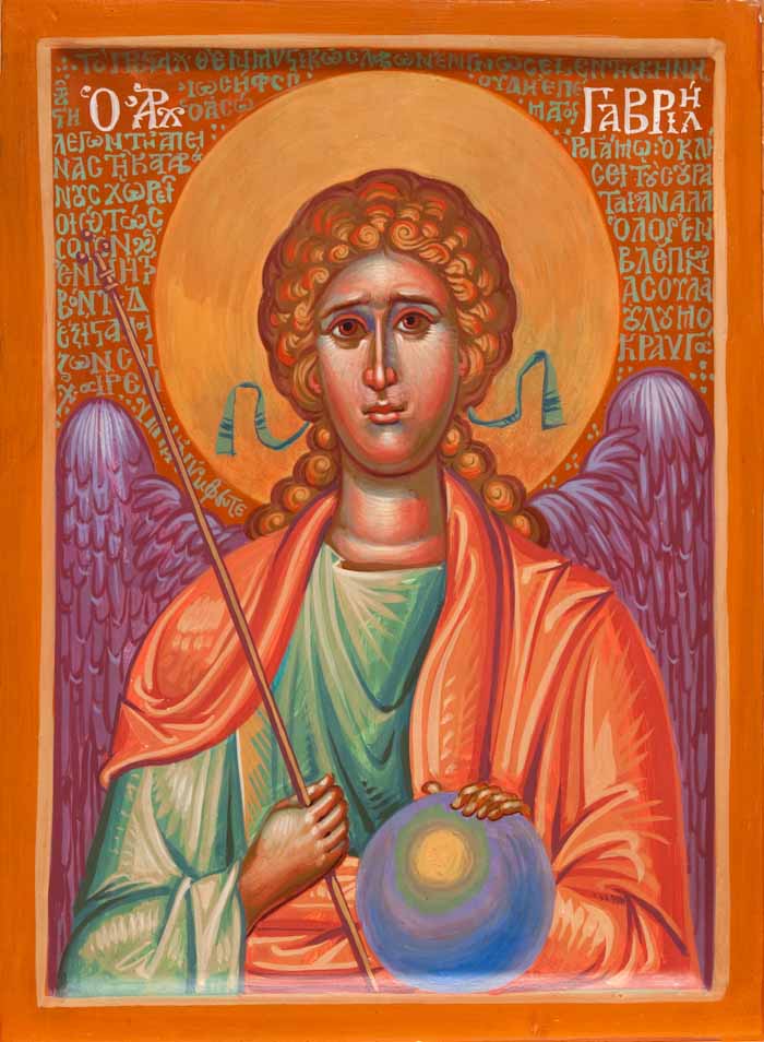 "Archangel Gabriel", acrylic on board, 2024