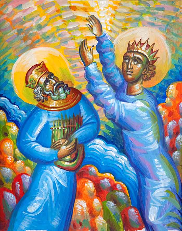 "Saint Tikhon and Saint Paisios", acrylic on canvas, 2025