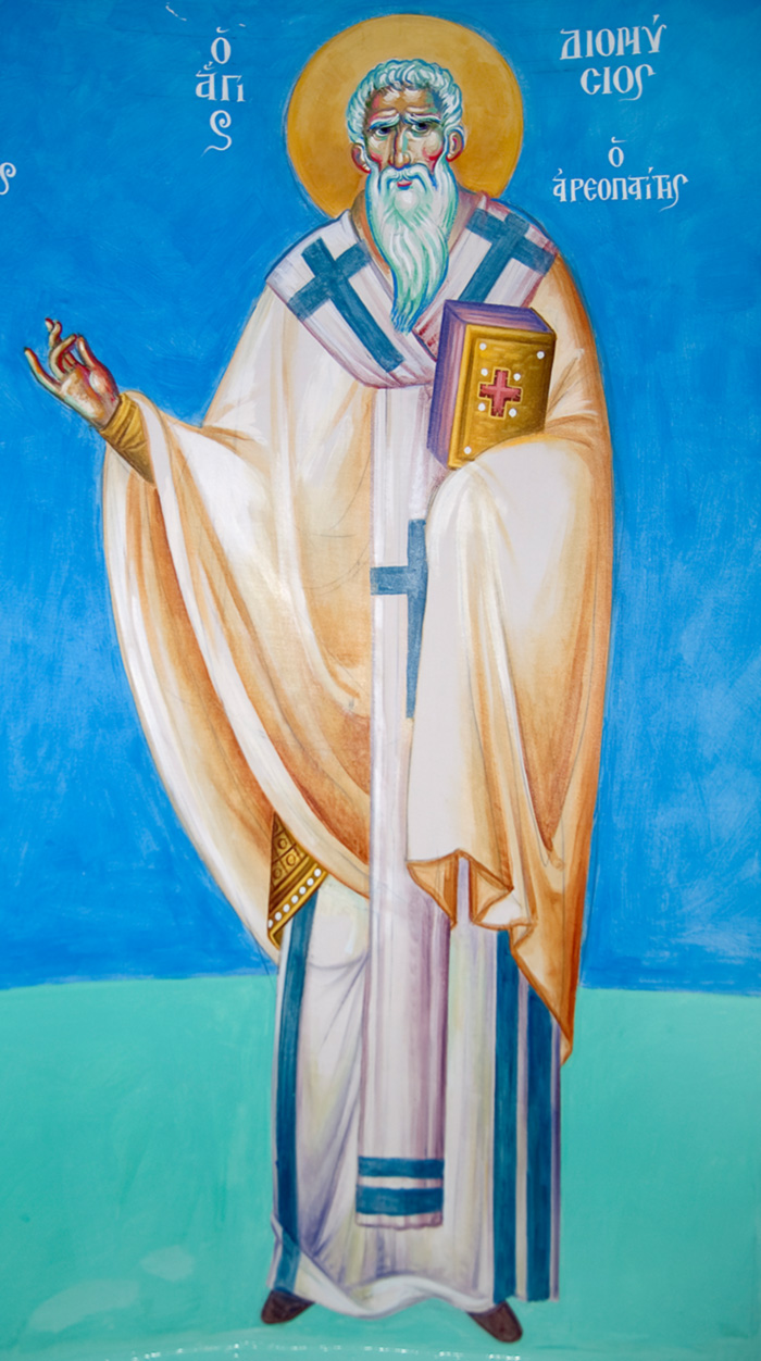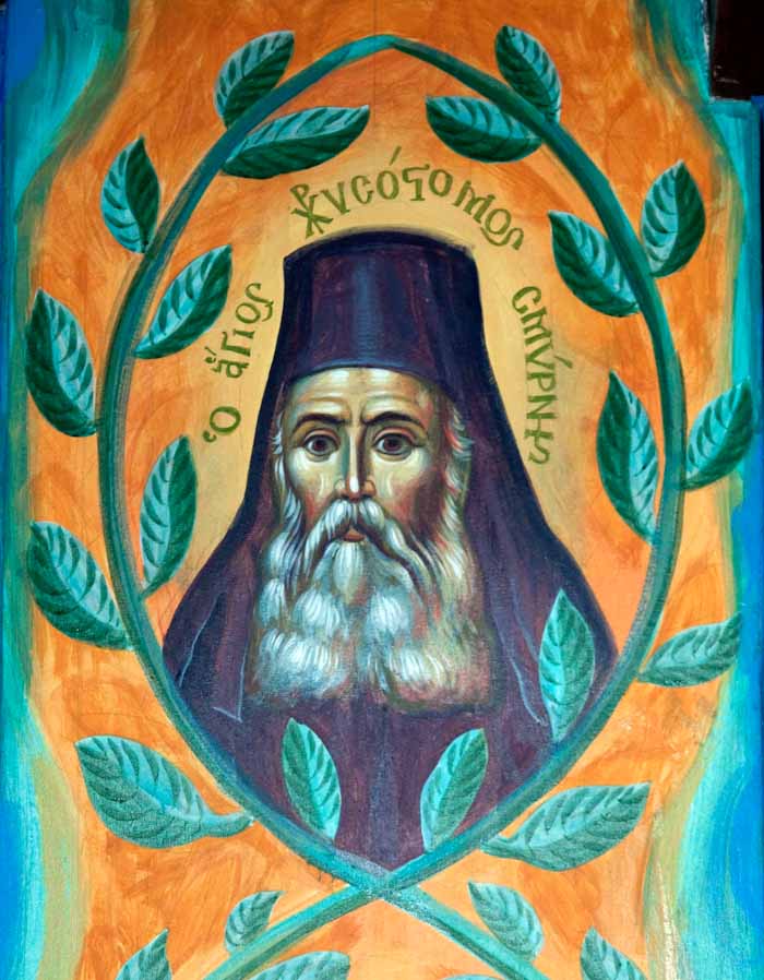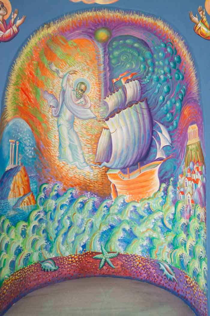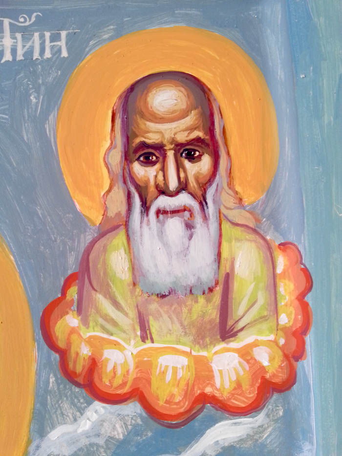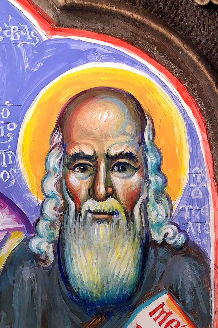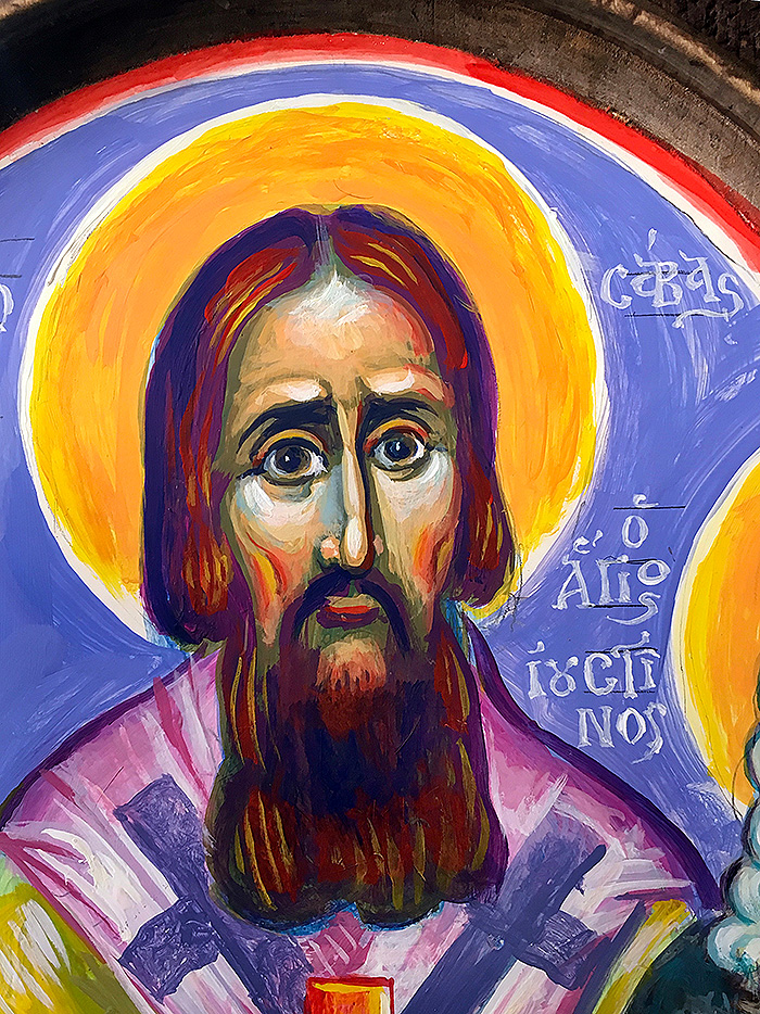 "The God-Man is the Measure of Everything: St. Justin in Chelie", wall painting, Church in Eleonas, Theba, Greece, 2023