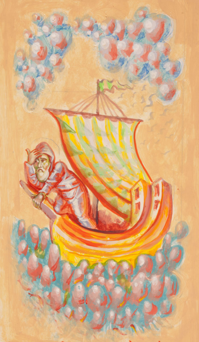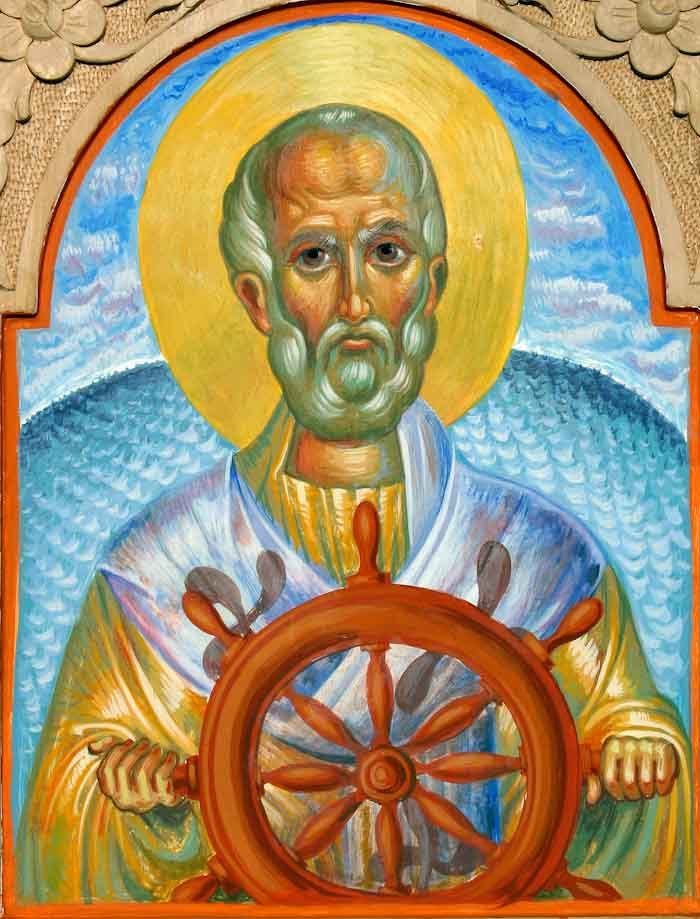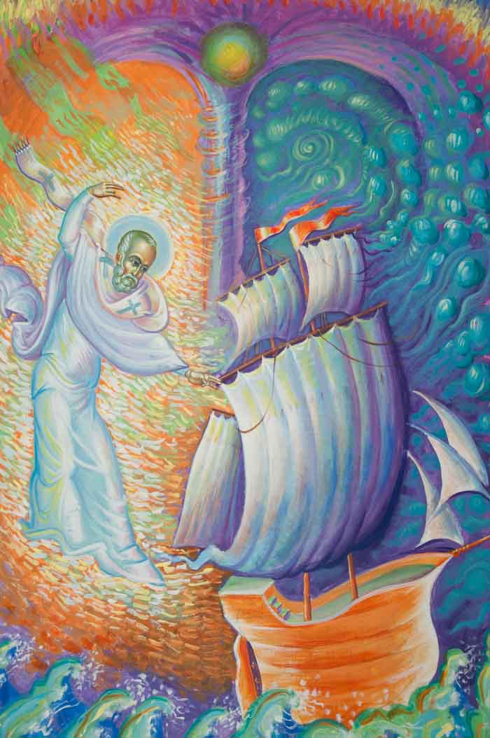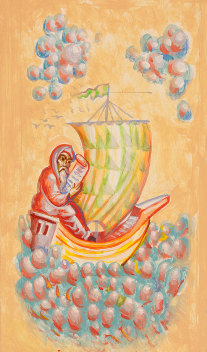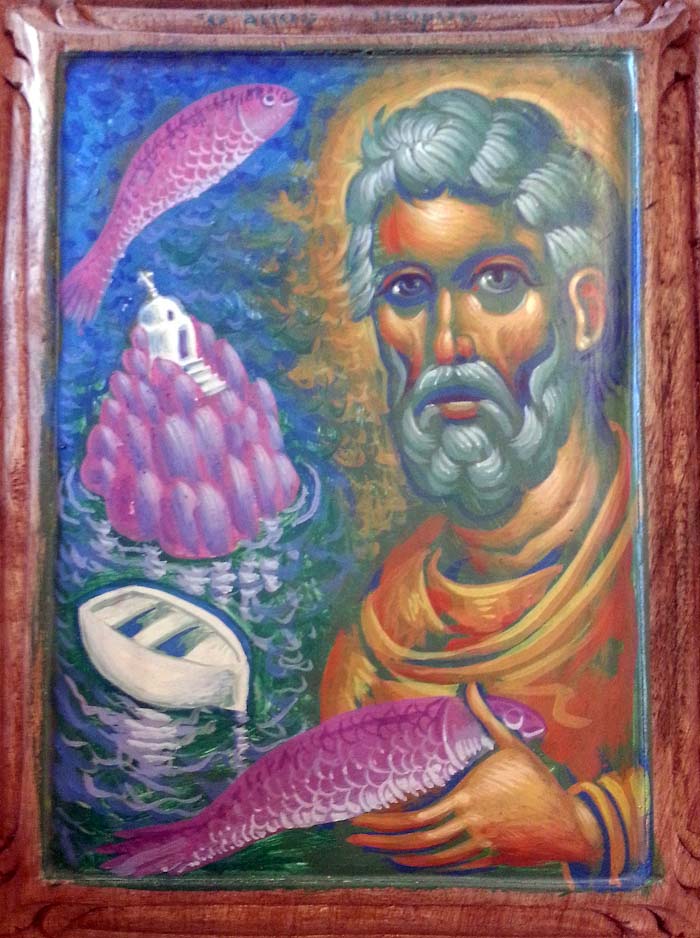 St Peter with fishes and a boat, egg-tempera on wood, 2006.