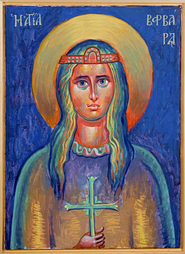 "St Barbara the Great Martyr", acrylic on woden panel board, 2024, by the hand of Fr. Stamatis Skliris and Bishop Maxim Vasiljevic