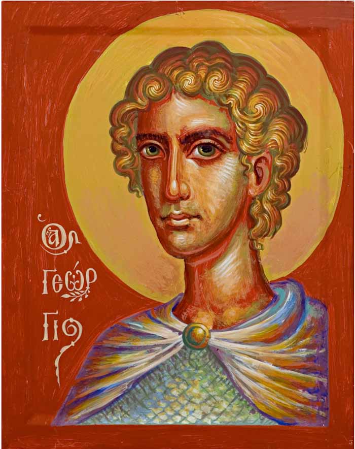 The icon of St. George by Fr. Stamatis is striking in its representation of St. George's manliness and courage.