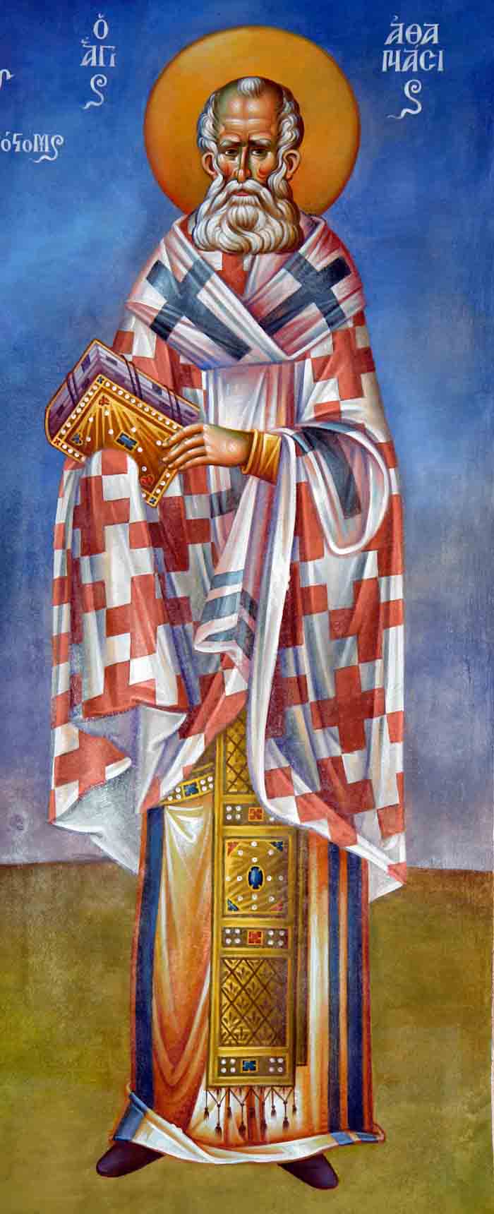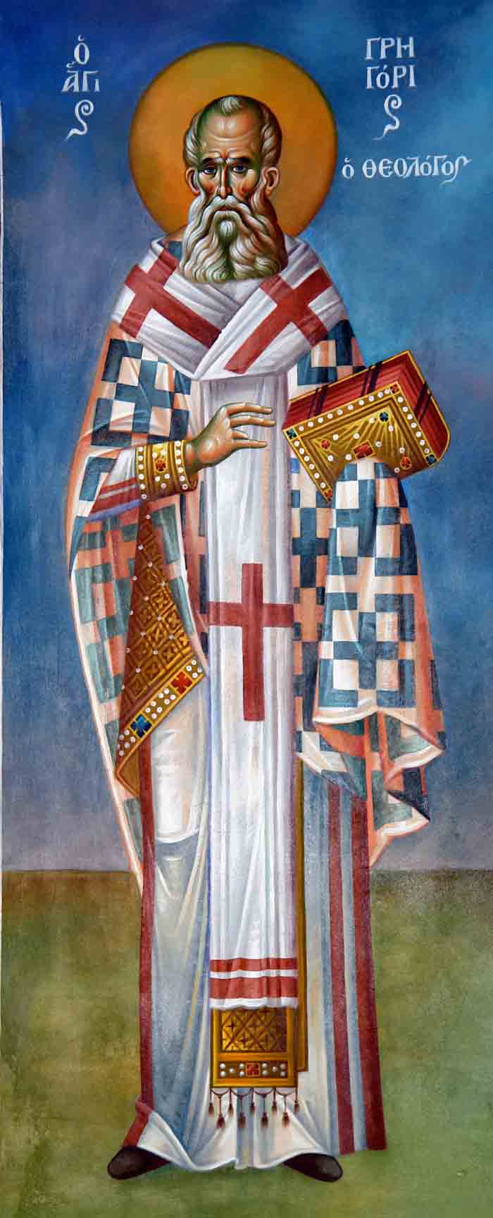With the grace of Christ, at this moment I have finished the icon of St. Gregory Palamas, including the polishing and everything else. The Athos shines, the soil is golden, the trees are red and the beard and the hair of the Saint is on fire. The face shines with the bright accents, and the eyes are ecstatically joyous but being serious they are not smiling towards us. Based on this icon we are introduced to divine immutability a la Palamas, leading us to Christ Who energizes the Divine activity.