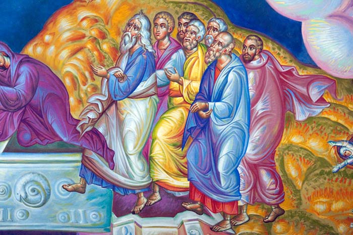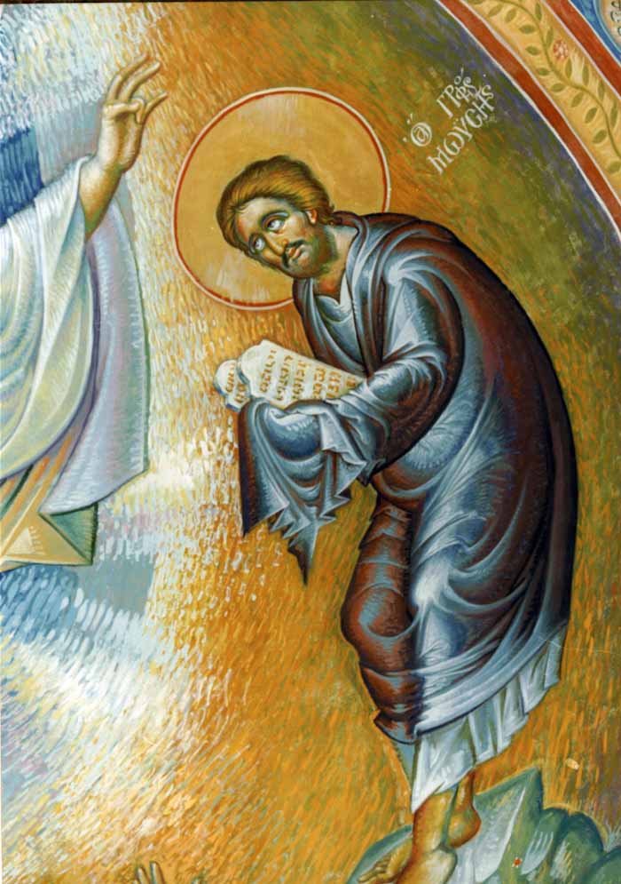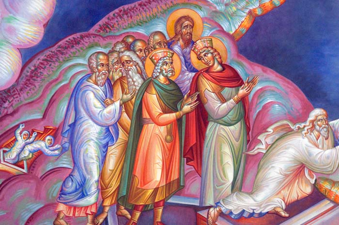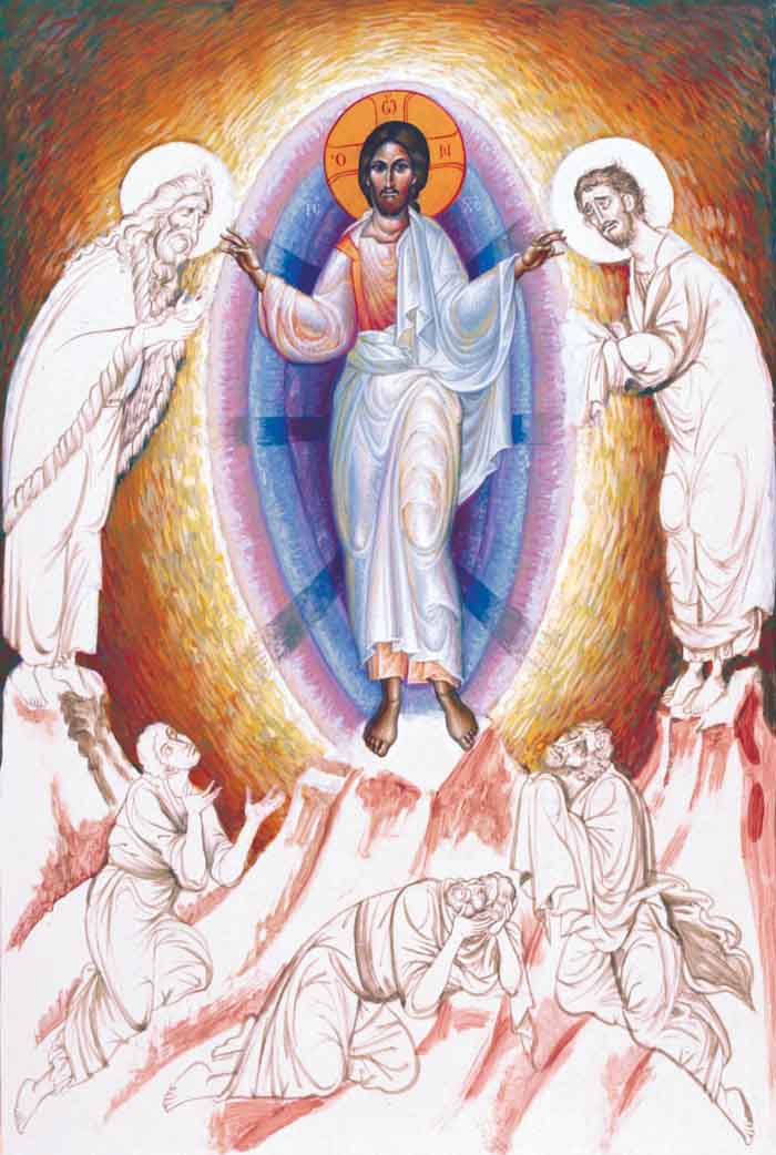 THEOLOGICAL MEANING OF THE ICON BACKGROUND: The background represents a golden-yellow cloud of light, which covered Christ and the two Prophets, causing their garments to shine like light on Mount Tabor during the Transfiguration.