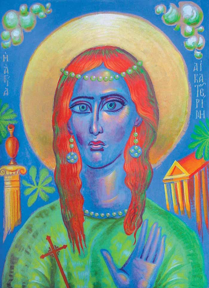 The icon of the Holy Martyr Ourania (305 AD) puts a landmark because it opens a new chapter in the iconography of Fr Stamatis Skliris. It maintains the ethos of Byzantine iconography, but for the first time it gives emphasis on PURE COLORS.