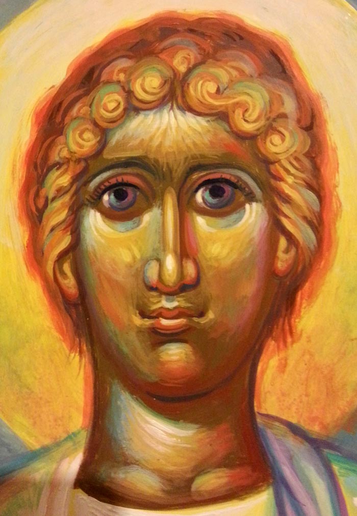 Saint Stephen the First Martyr, detail, egg tempera on wooden board, 2014