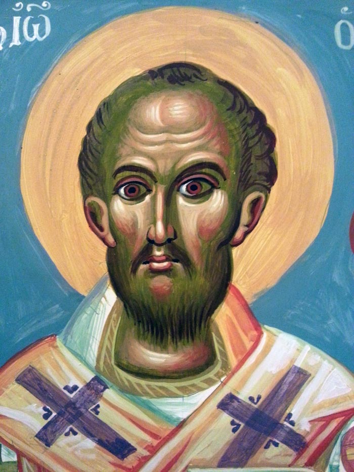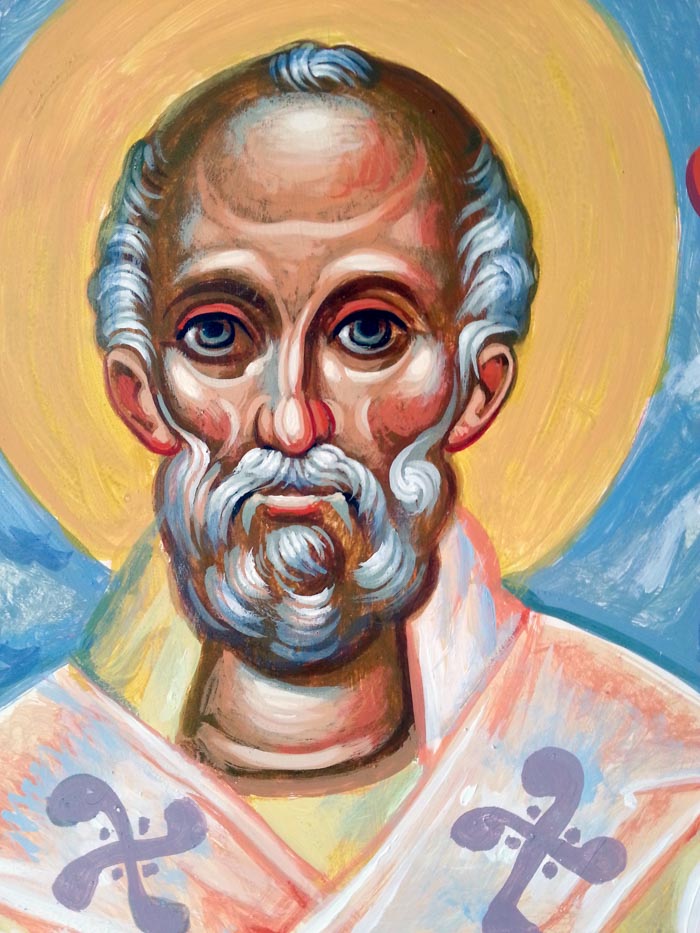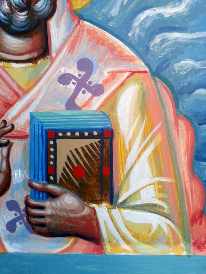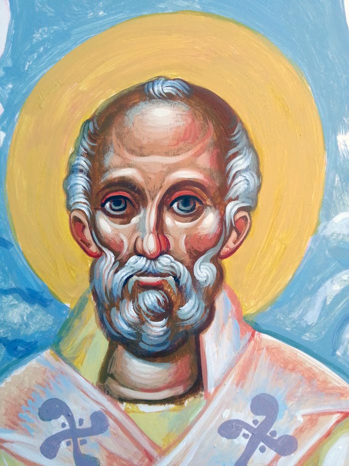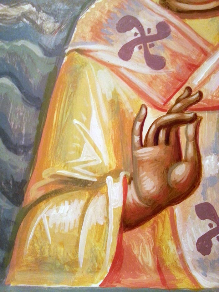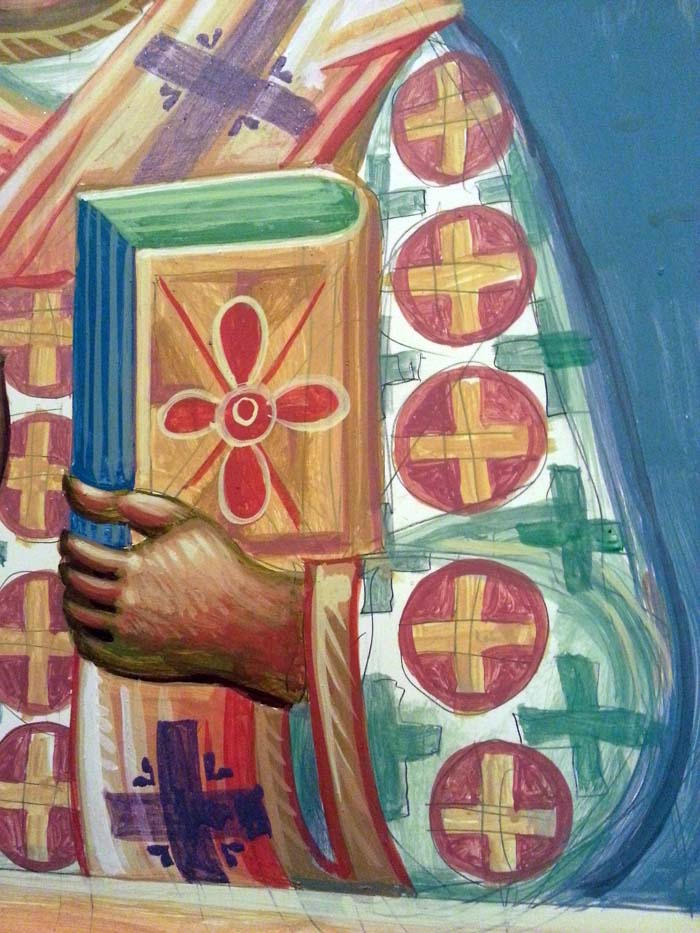 St John Chrysostom, detail, egg tempera on wooden board, 2015.