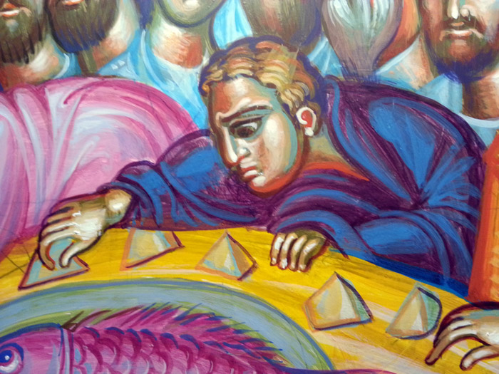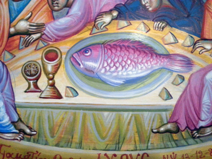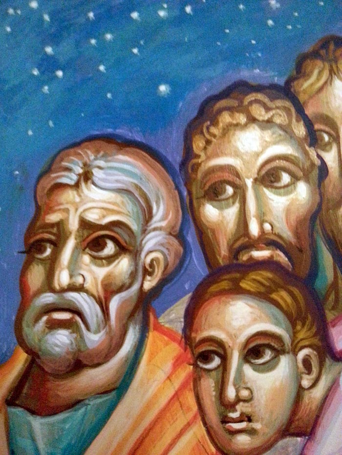 St Peter with fishes and a boat, detail, egg-tempera on wood, 2006.