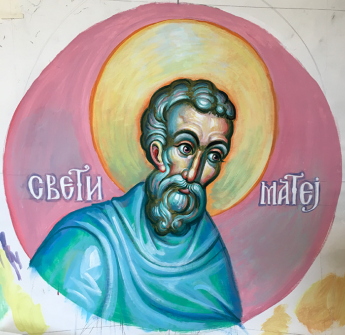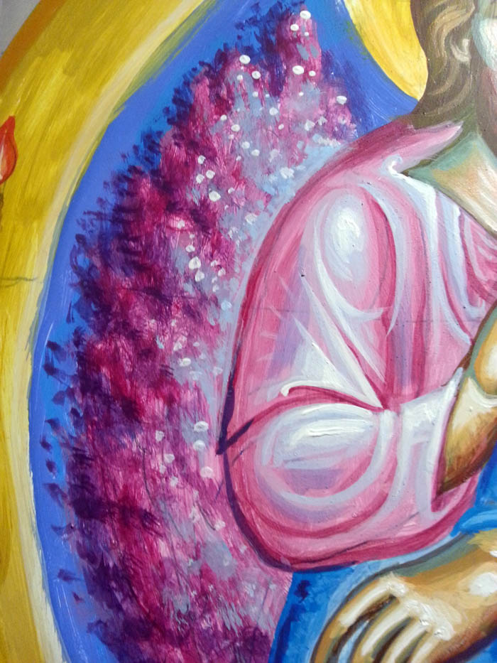 "I applied the technique of Kosta Bradich, a painter with whom I am connected through a long-lasting friendship and spiritual cooperation. Kosta explained his technique to me. Since it has the ability to achieve plenty of light, I thought it suitable to be applied in iconography."