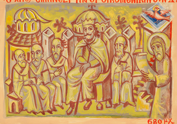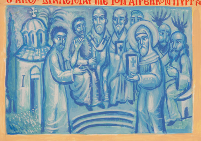 “Saint Justin Writing Dissertation in Athens 1926”, acrylic on board, 2010