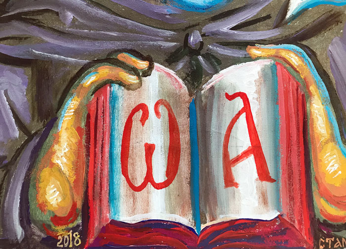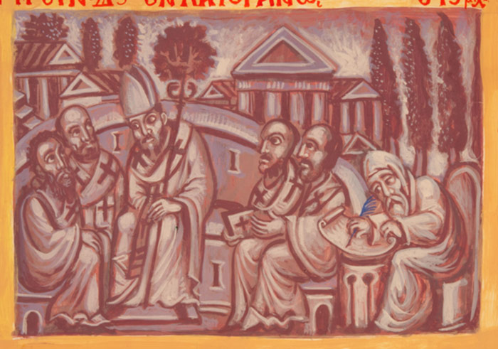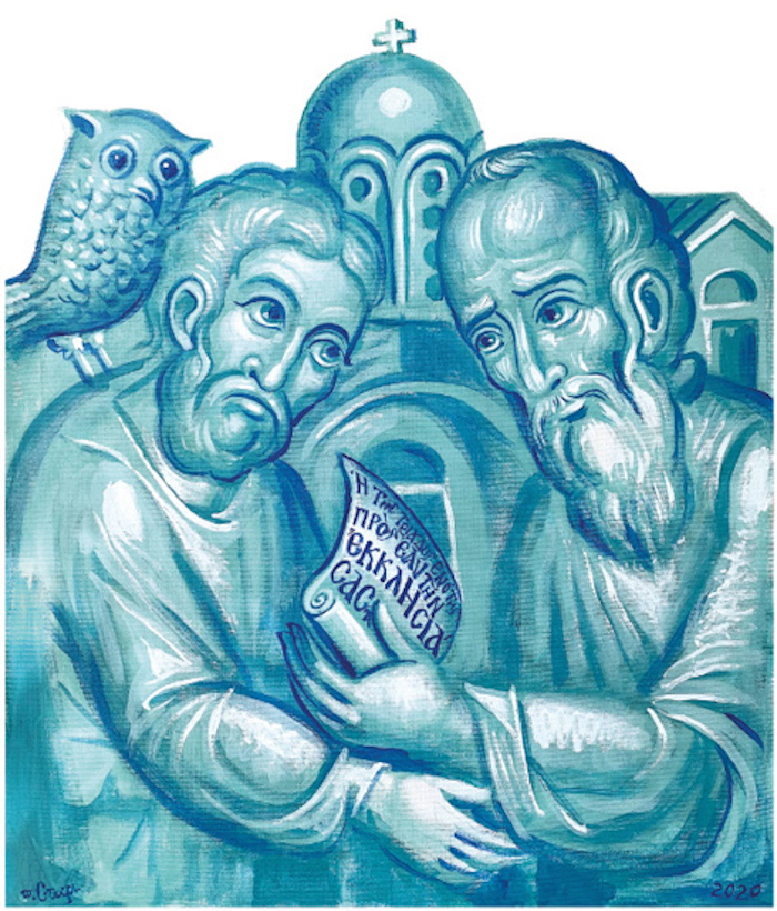 St. Photius and Aristotle, acrylic on canvas, 2020
