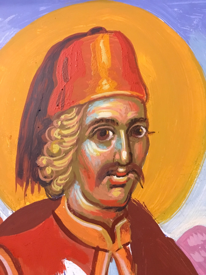 I often borrow elements from different artistic periods in the service of the icons I paint. This icon of St. Kallisti was ordered by someone in the Crimea. It was painted on Saturday 7 June 2014. Some people may not like it, but it may just be an authentic portrait.