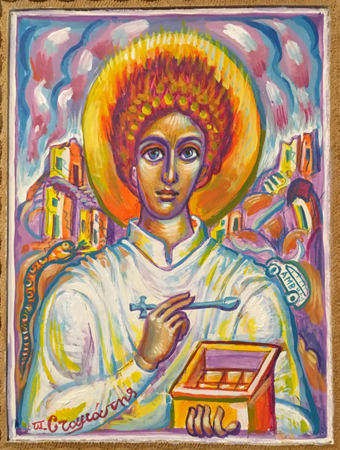 "St. Stephen the First Martyr", acrylic on board, Stamatis Skliris, 2023