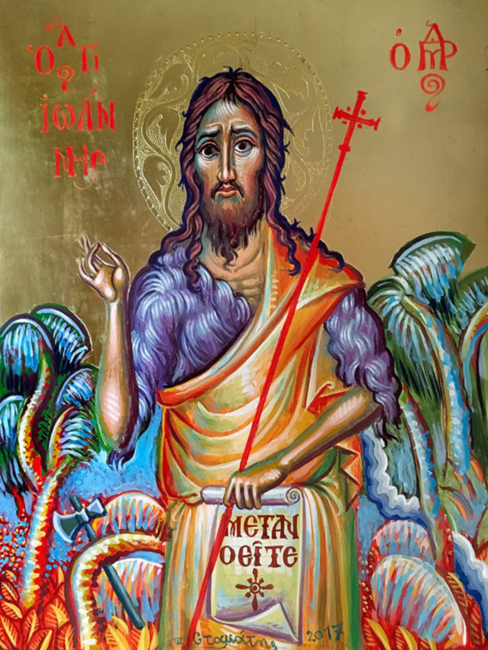 St John the Baptist, Egg-tempera on wood, 1998. The icon is in the Church of the Panagia, Vrisoula (Ioannina, Greece).