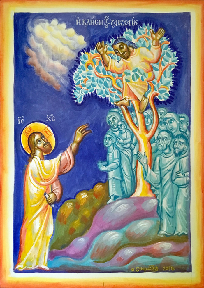 Inviting Zacchaeus to Come Down from the Tree, Acrylic on board, Stamatis Skliris 2018