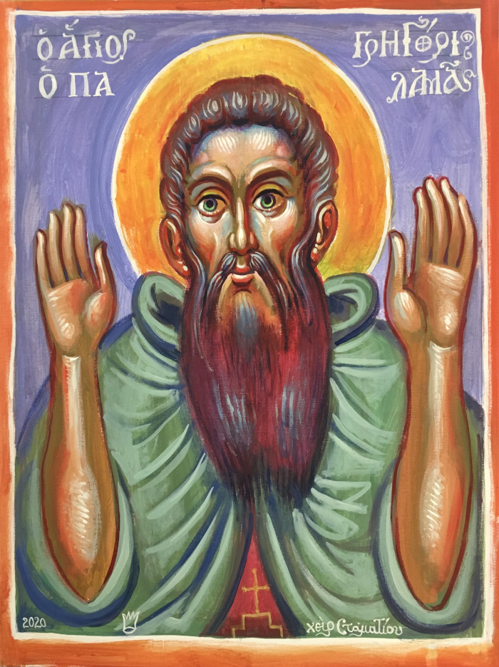 "St. Gregory Palamas", acrylic on board, Stamatis Skliris, 2020