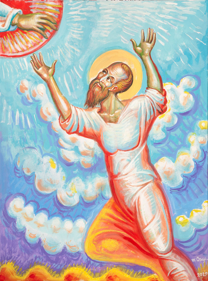"Saint Elias of Thisbe", acrylic on board, Stamatis Skliris, 2023