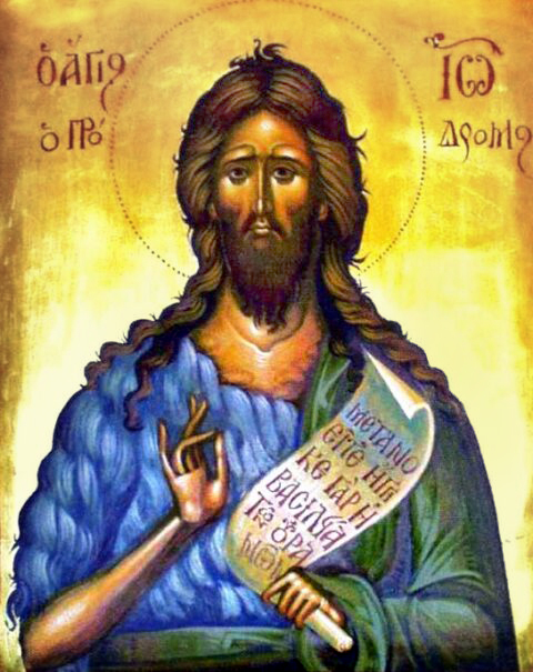 "St. John the Forerunner", acrylic on wooden board, Stamatis Skliris, 2023