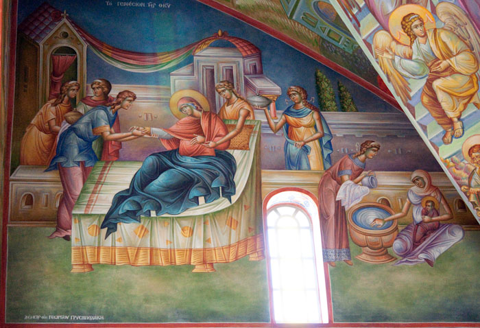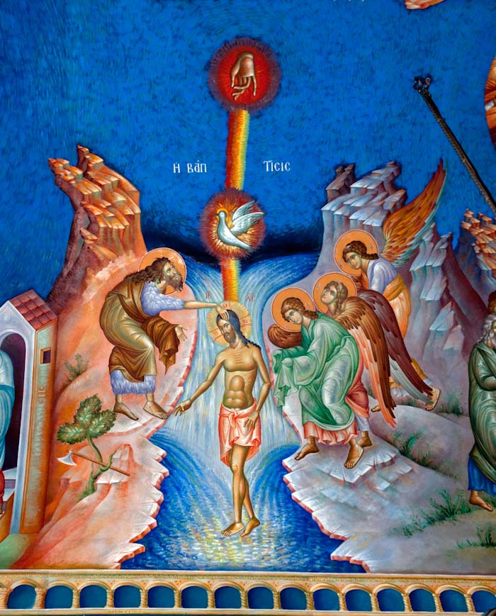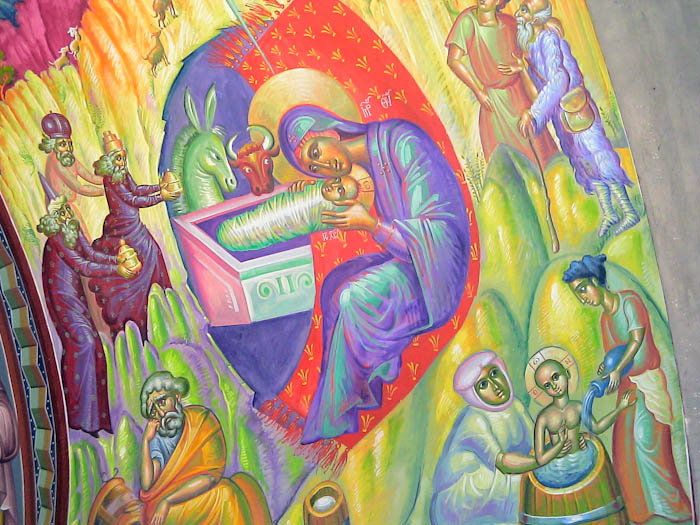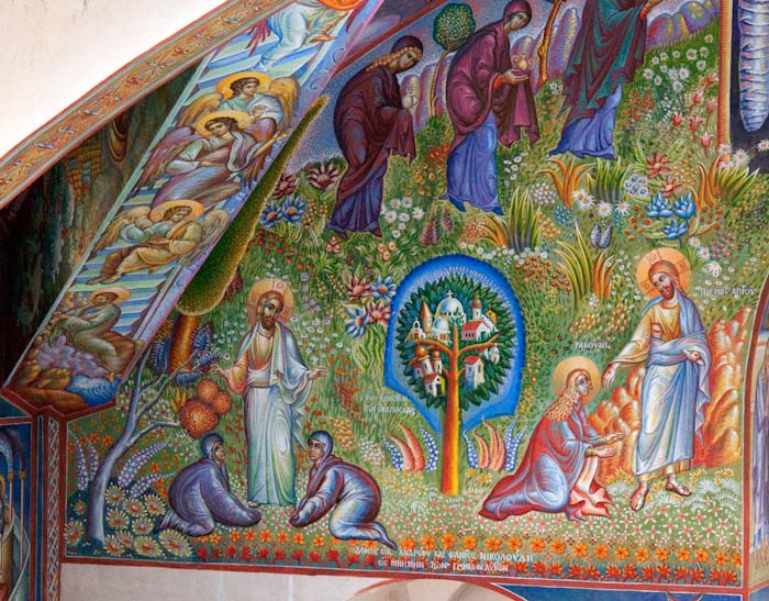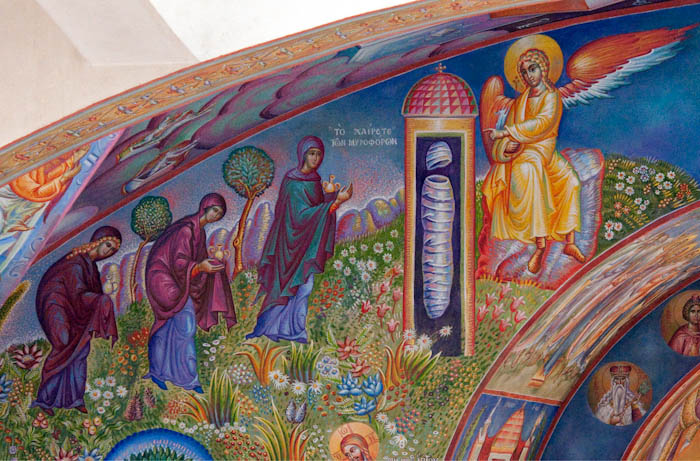 Crucifixion, detail, wall painting, Church of St. Maximus, Kostolac, Stamatis Skliris, 2022