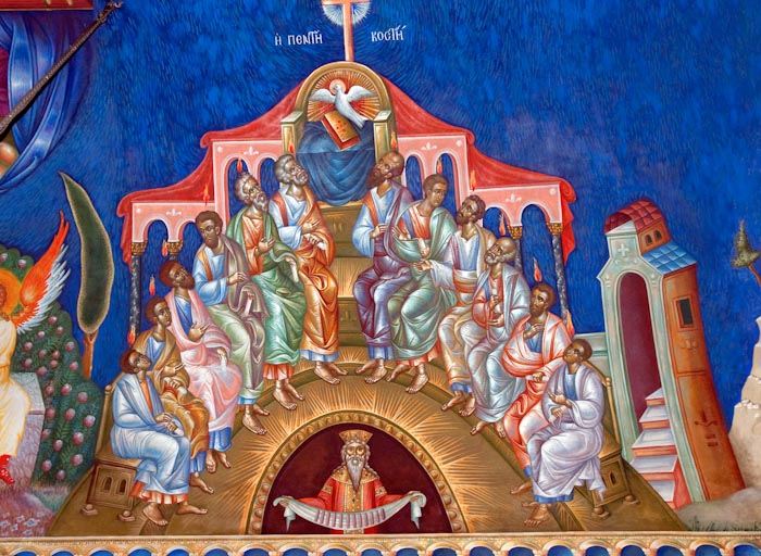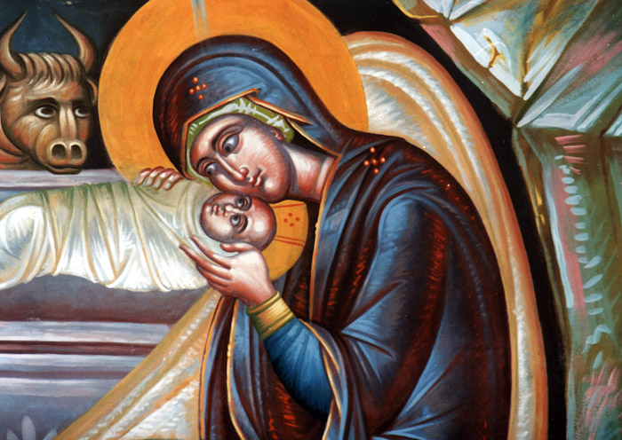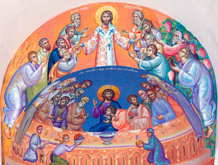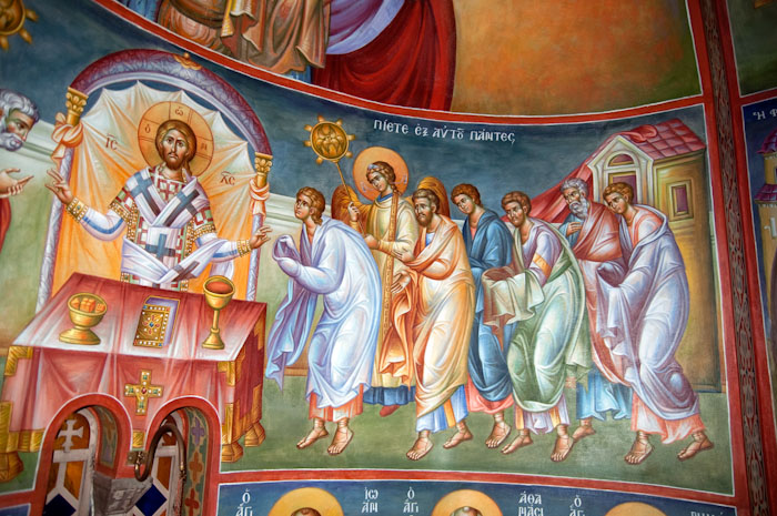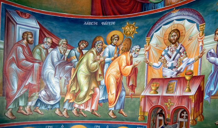 "Mystical Supper", detail, acrylic on board, Stamatis Skliris, 2021
