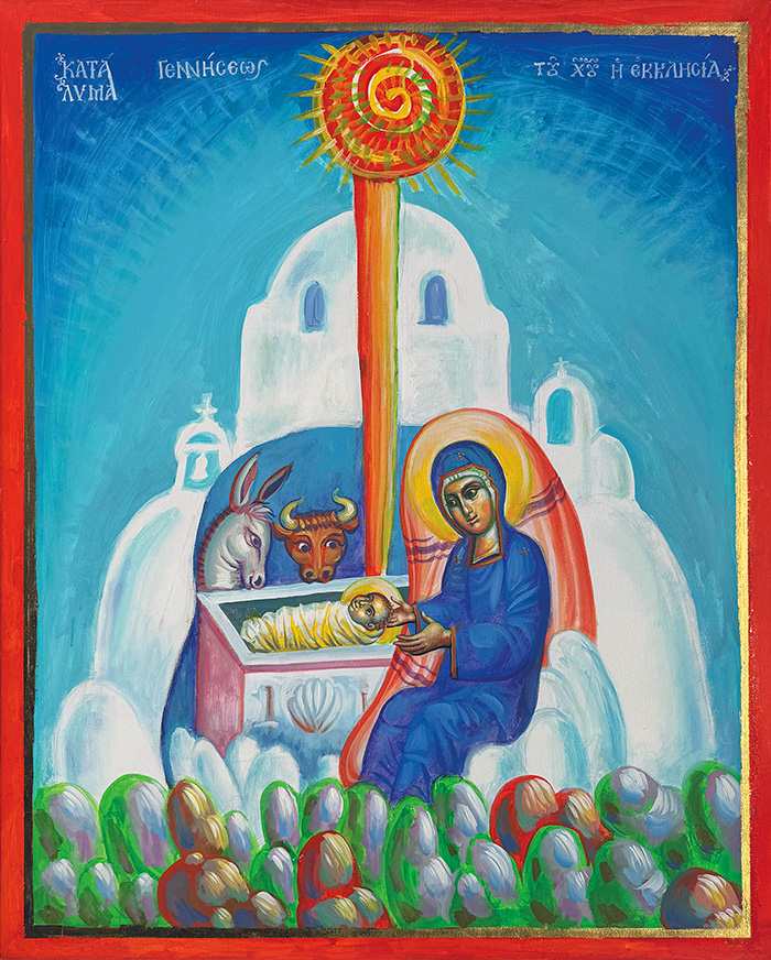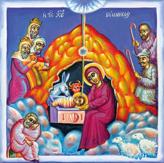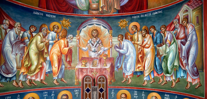 "Mystical Supper", acrylic on board, Stamatis Skliris, 2021