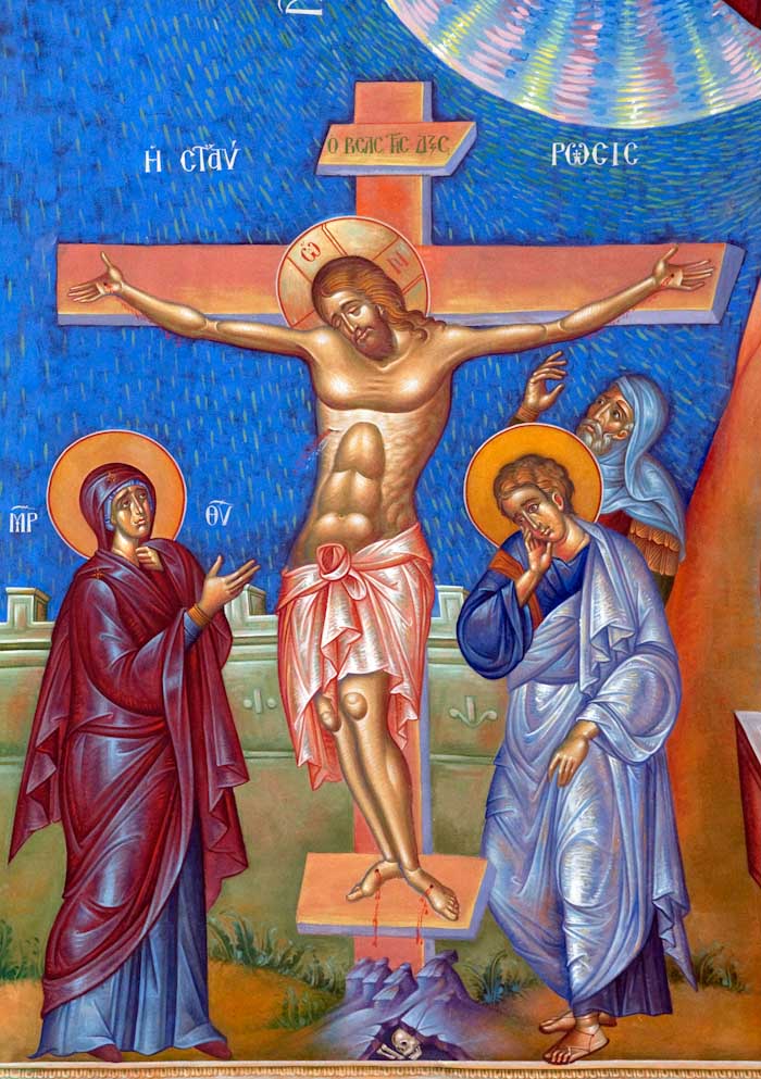 Crucifixion, wall painting, Church of St. Maximus, Kostolac, Stamatis Skliris, 2022
