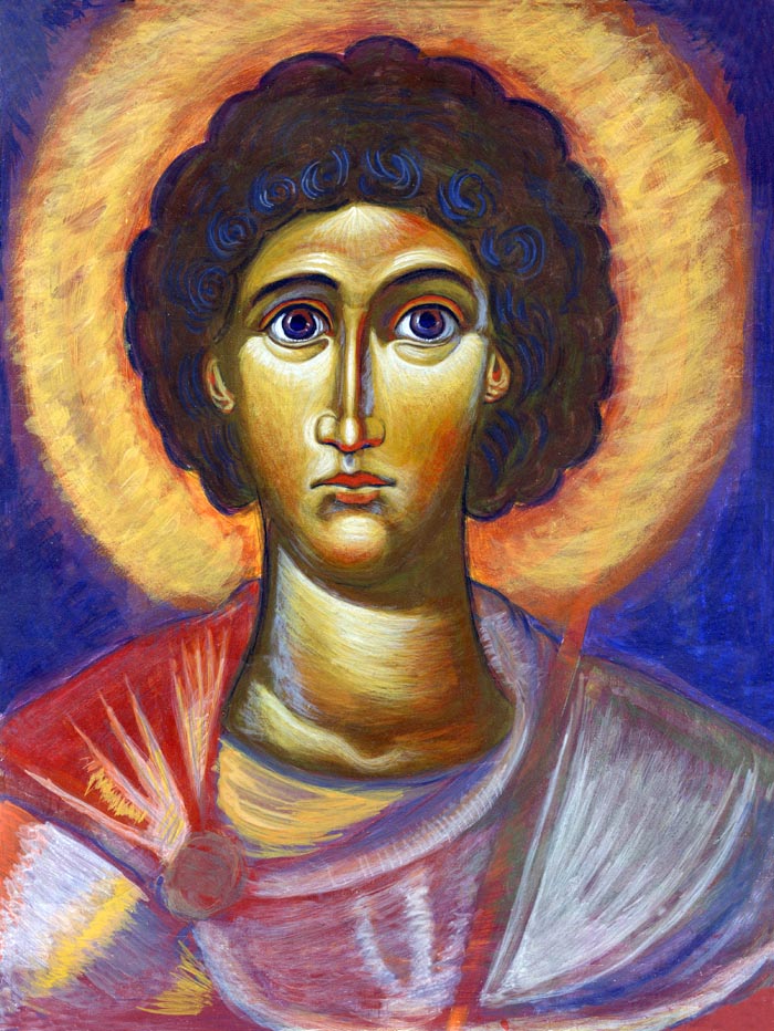 Saint Panteleimon, Egg tempera on wood, by Protinica Radmila Vasiljevic