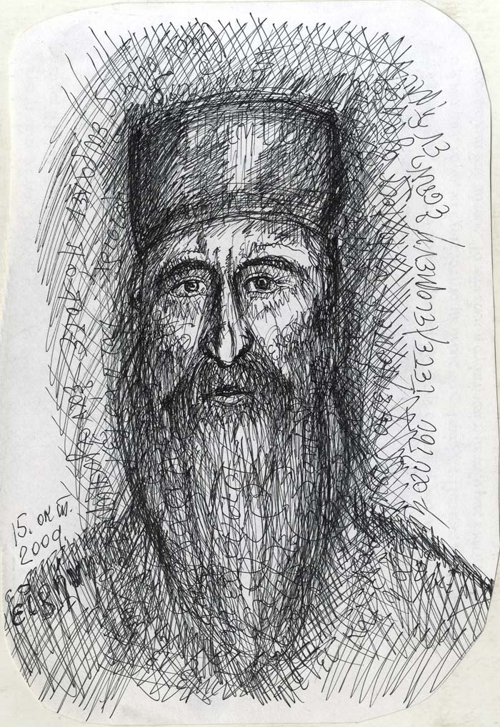 This painting is a fruit of the iconography classes that Father Marko attended in Jackson at the diocesan workshop. It depicts Saint Porphyrios the New, whose calm and joyful gaze greets us—embracing us, welcoming us, and gently inviting us to repentance.