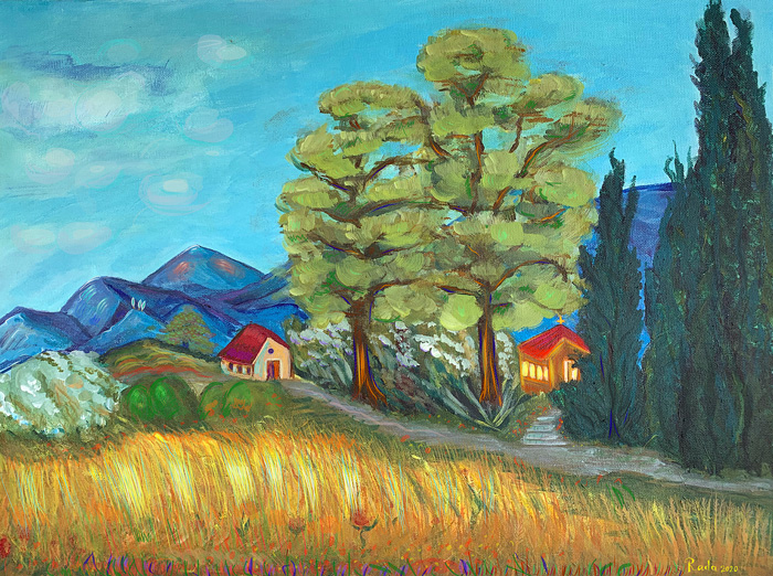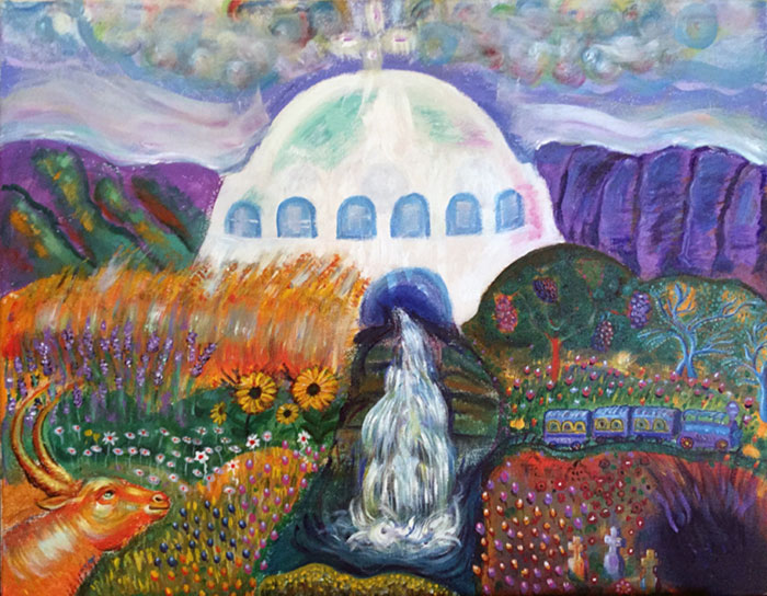 "Summer Pascha in a Skete in the North Star", acrylic on canvas, Radmila Vasiljevic, 2020