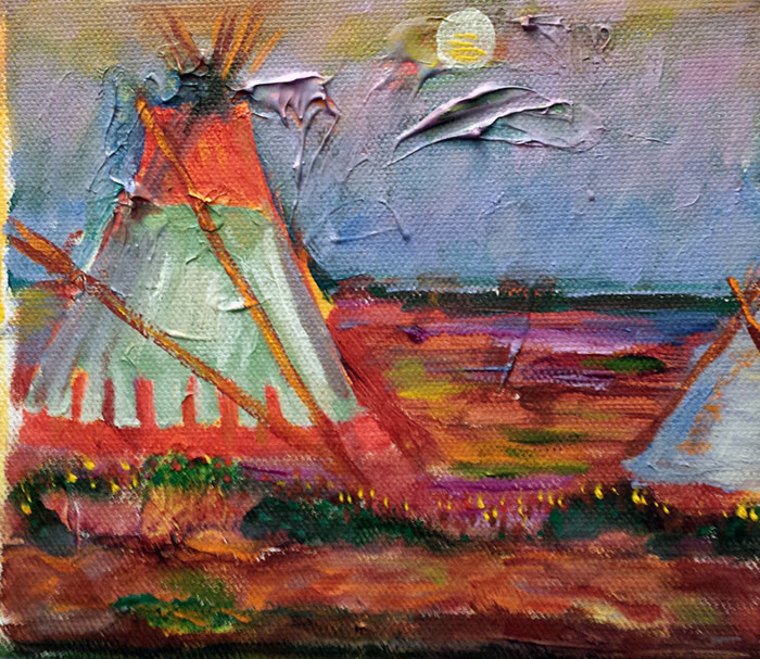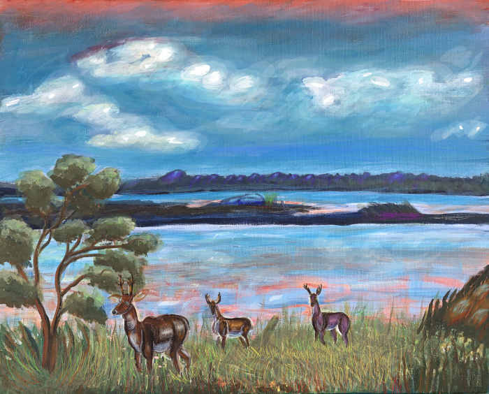 "Between Lakes and Bay", acrylic on gesso board, Bishop Maxim, 2025