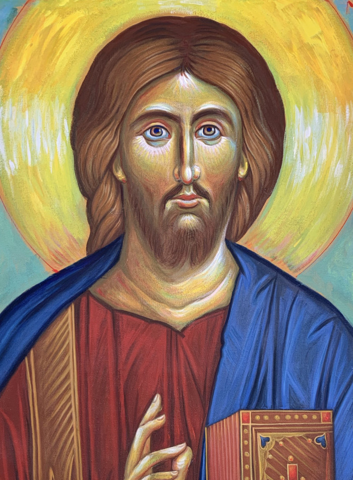 "Christ of the Eternal Now", acrylic on gesso board, Bishop Maxim, 2025