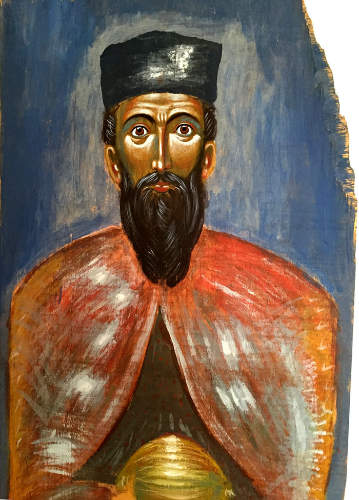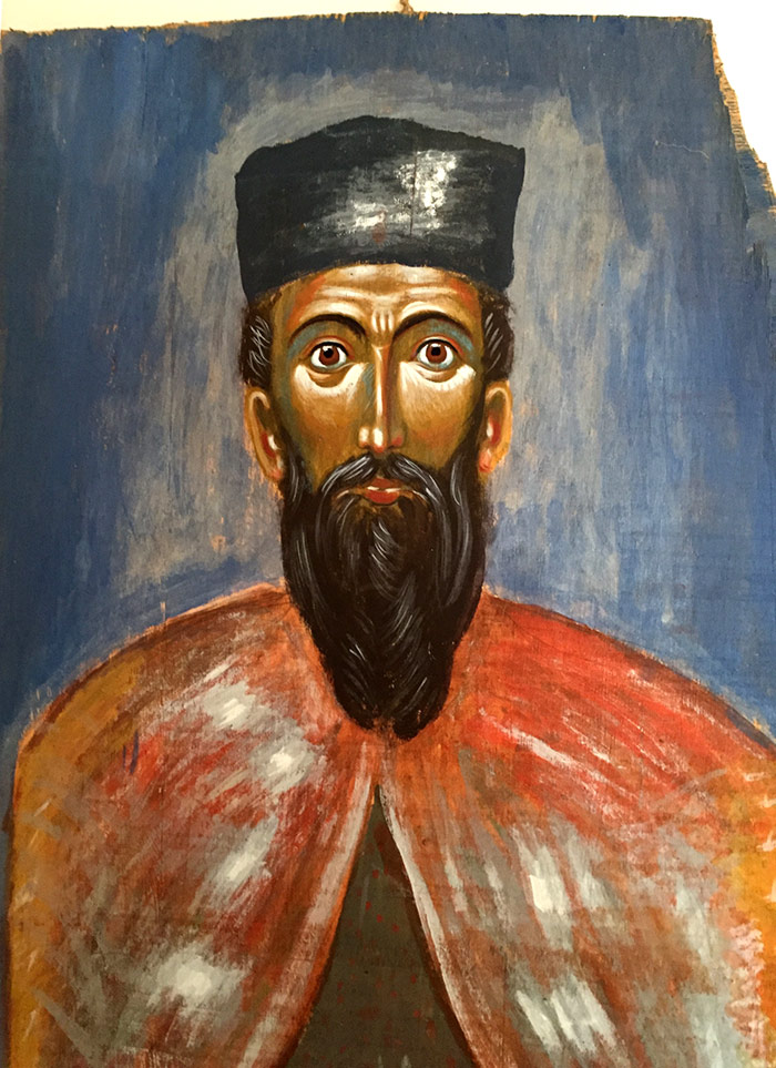 "St Vasilije of Ostrog", detail, egg tempera on board, by Radmila Vasiljevic, 2015