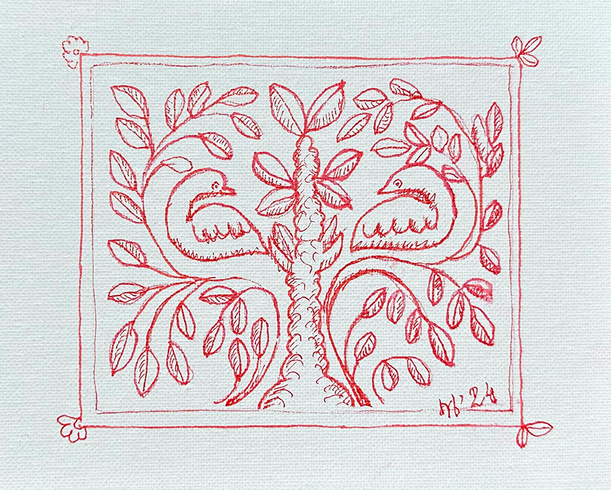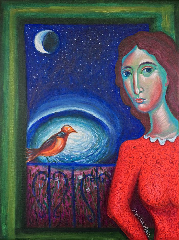 "Chirping at Dawn", acrylic on canvas board, Radmila Vasiljevic, 2026