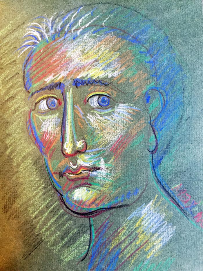 "Berlin—Echoes in Becoming", pastel on paper, Bishop Maxim, 2025
