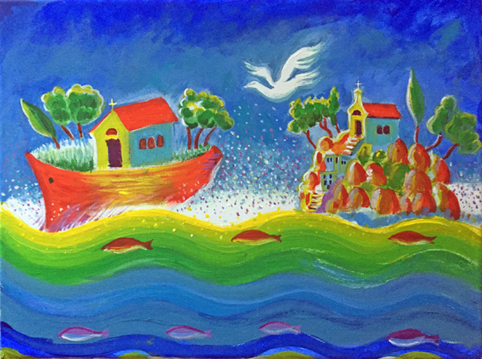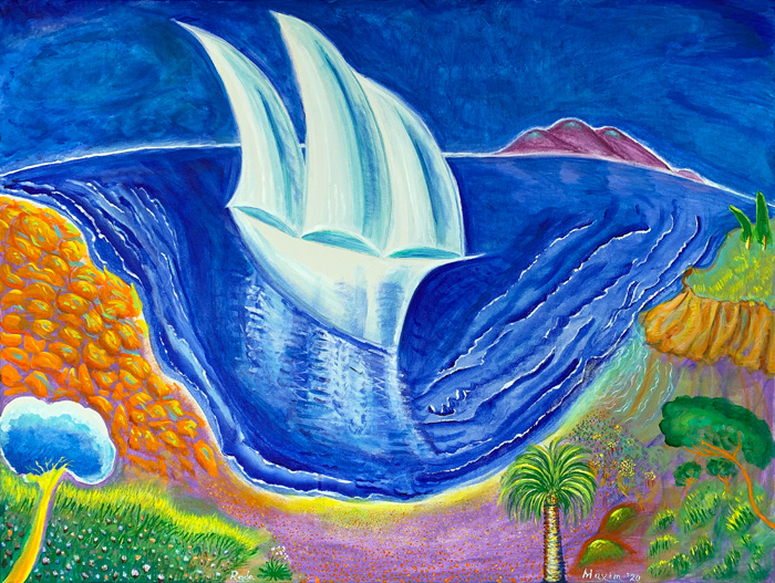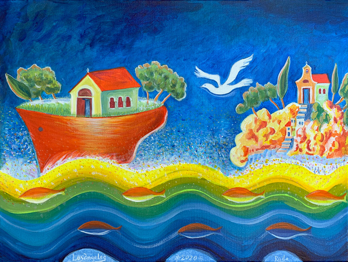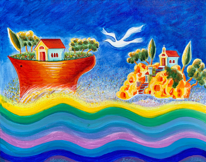 Ship of Salvation, acrylic on canvas, Radmila Vasiljevic, 2020
