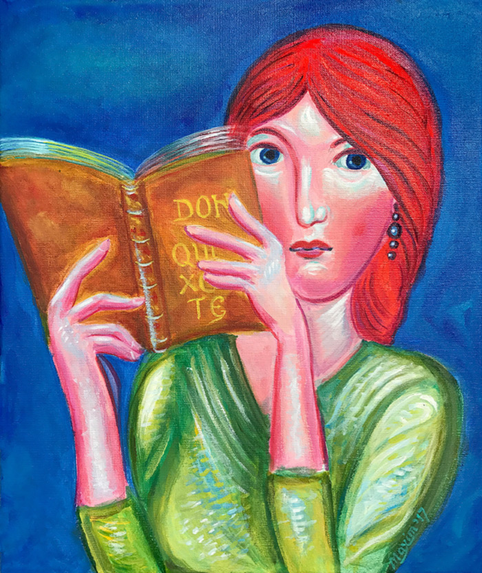 "Reading Don Quixote", bp. Maxim, acrylic on canvas 2017