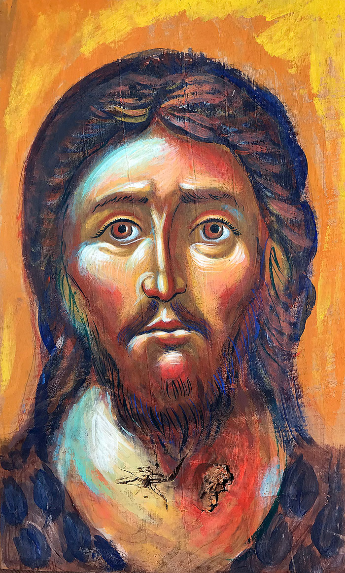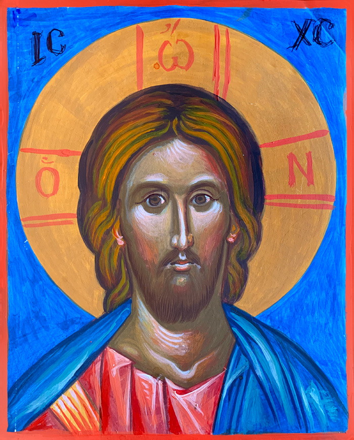 Jesus Christ, egg tempera on cardboard, by Radmila Vasiljevic, 2017