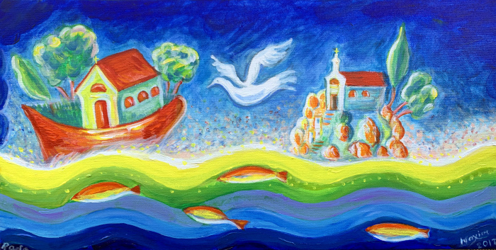 “Ship of Salvation”, acrylic on canvas, by bishop Maxim and Radmila Vasiljevic, 2020