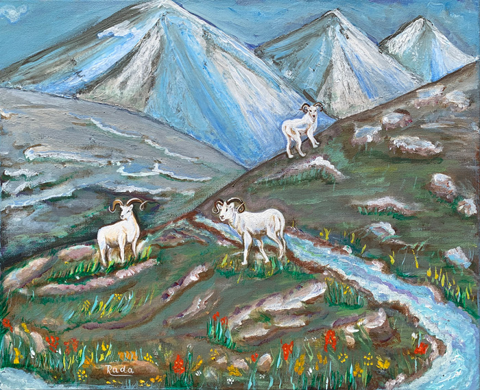 "Alaska Dall Sheep", acrylic on canvas, by Radmila Vasiljevic, 2020