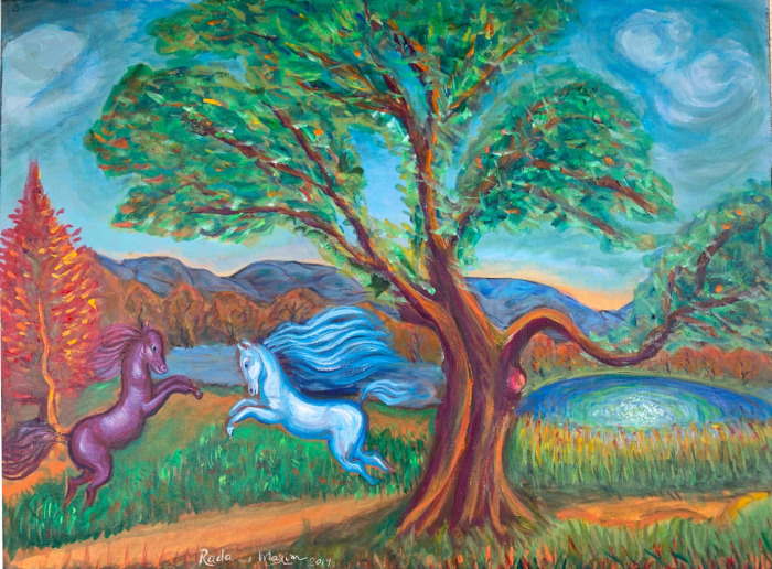 "Horses playing", acrylic on canvas, by bp Maxim and Radmila Vasiljevic, 2019