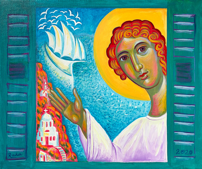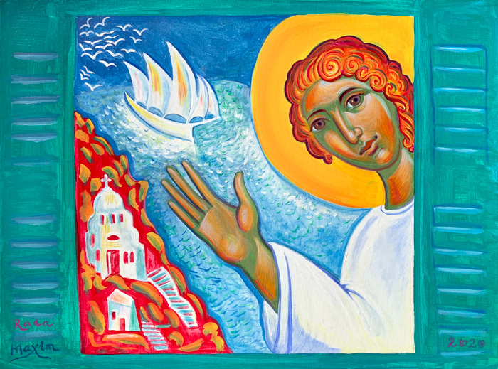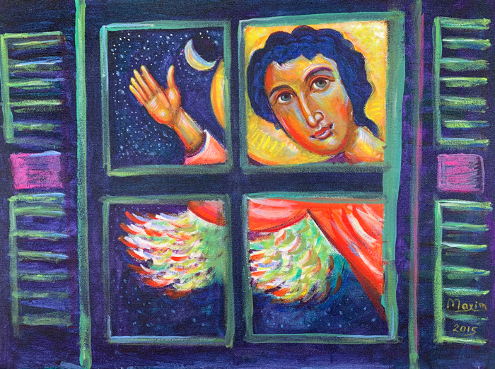 "My Angel is Greeting Me", acrylic on canvas, by bishop Maxim, 2015
