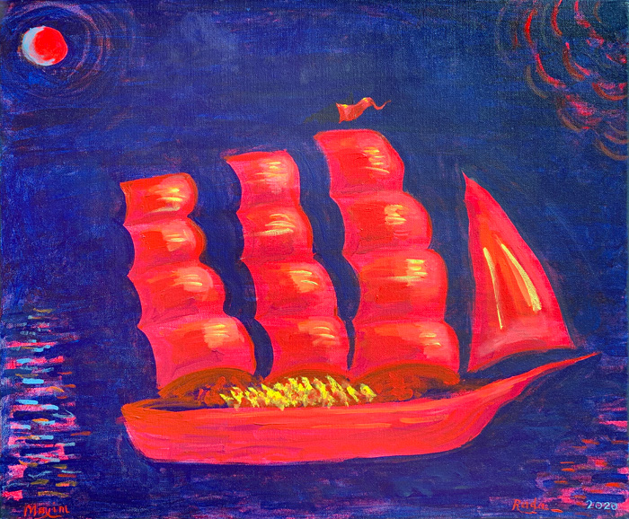 "Thanksgiving Ship", acrylic on canvas, by bp. Maxim and Radmila Vasiljevic, 2020