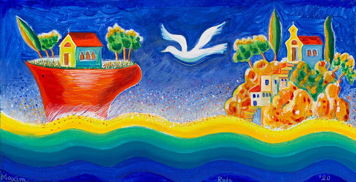 Ship of Salvation, acrylic on canvas, by bp Maxim and Rada Vasiljevic, 2020